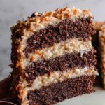 Traditional German Chocolate Cake featuring rich chocolate layers paired with a luscious coconut pecan frosting. This classic dessert combines moist cake with a creamy, nutty frosting, perfect for celebrations and family gatherings.