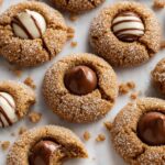Delicious gingerbread blossoms cookies feature warm spices and a soft molasses-infused dough that’s rolled in sugar and baked to perfection. Each cookie is topped with a melted Hershey’s Kiss or Hug candy center that adds a classic and festive touch, perfect for holiday gatherings or cozy treats.
