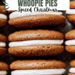 For holiday parties, I like to arrange these whoopie pies on a festive platter lined with parchment and dotted with gingerbread cookies or candy canes. Wrapping each pie in wax paper and tying with twine makes adorable edible gifts too!