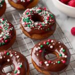 - Dip Donuts: Dip the cooled donuts into the chocolate glaze to coat the tops. Optionally, decorate with sprinkles if desired.