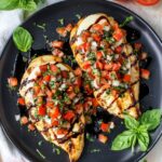 - Rest and Serve: Remove the chicken from the grill and let it rest for 5 minutes to retain its juices. Top each piece with the prepared tomato basil topping and drizzle with balsamic glaze before serving.