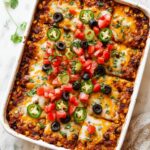 This Ground Beef Enchilada Casserole with Corn Tortillas is a hearty and flavorful Mexican-inspired dish featuring layers of seasoned beef filling, corn tortillas, and melted Monterey Jack and sharp cheddar cheeses. Slow-simmered with a rich blend of spices, tomato paste, and smoky elements like cocoa and cinnamon, this casserole is baked until bubbly and perfect for family dinners or meal prep.