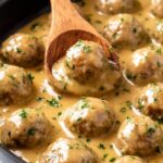 These tender and flavorful chicken meatballs are baked to perfection and served with a rich, creamy gravy sauce. Made with a blend of ground chicken and pork, Parmesan, and Italian seasonings, they are perfect for a comforting dinner served alongside mashed potatoes and roasted green beans.
