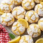 Delight in these tangy and soft Lemon Crinkle Cookies, featuring a luscious lemon flavor from fresh juice and zest. These cookies have a perfectly chewy center with crinkled, powdered sugar-coated exteriors that make them irresistibly charming and delicious.