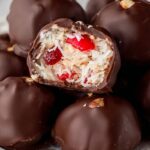 Martha Washington Candy is a nostalgic, no-bake treat featuring a rich blend of coconut, maraschino cherries, pecans, and sweetened condensed milk, all coated in smooth chocolate. These bite-sized delights are perfect for holiday gatherings or as a sweet homemade gift.