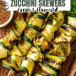 - Grill the skewers. Place the zucchini skewers on the hot grill and cook for about 10 minutes total, turning 2-3 times to ensure even grilling. You want visible charred marks and caramelization on the zucchini without overcooking them until mushy.