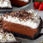 A decadent Mississippi Mud Pie featuring a chocolate cookie crust, fudgy brownie layer, creamy chocolate pudding, and topped with whipped cream and chocolate shavings. Perfect for chocolate lovers seeking a rich and layered dessert.
