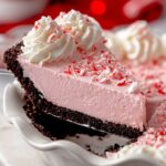 This No Bake Christmas Peppermint Pie is a festive and creamy dessert featuring a smooth peppermint-flavored cream cheese filling in an Oreo crust, topped with whipped cream and crushed peppermint candy. Perfect for holiday celebrations and easy to prepare without baking.