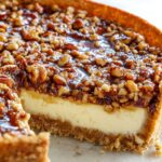 This Old Fashioned Custard Pie features a rich oatmeal cookie crust filled with a smooth, spiced custard made from eggs, cream, and warm spices. Finished with an optional homemade praline sauce topped with coarse sugar, this classic dessert is both comforting and elegant, perfect for any occasion.