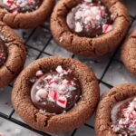 These Peppermint Thumbprint Cookies combine the rich flavor of cocoa with a refreshing peppermint twist, filled with melted chocolate and topped with crushed candy canes for a festive holiday treat.