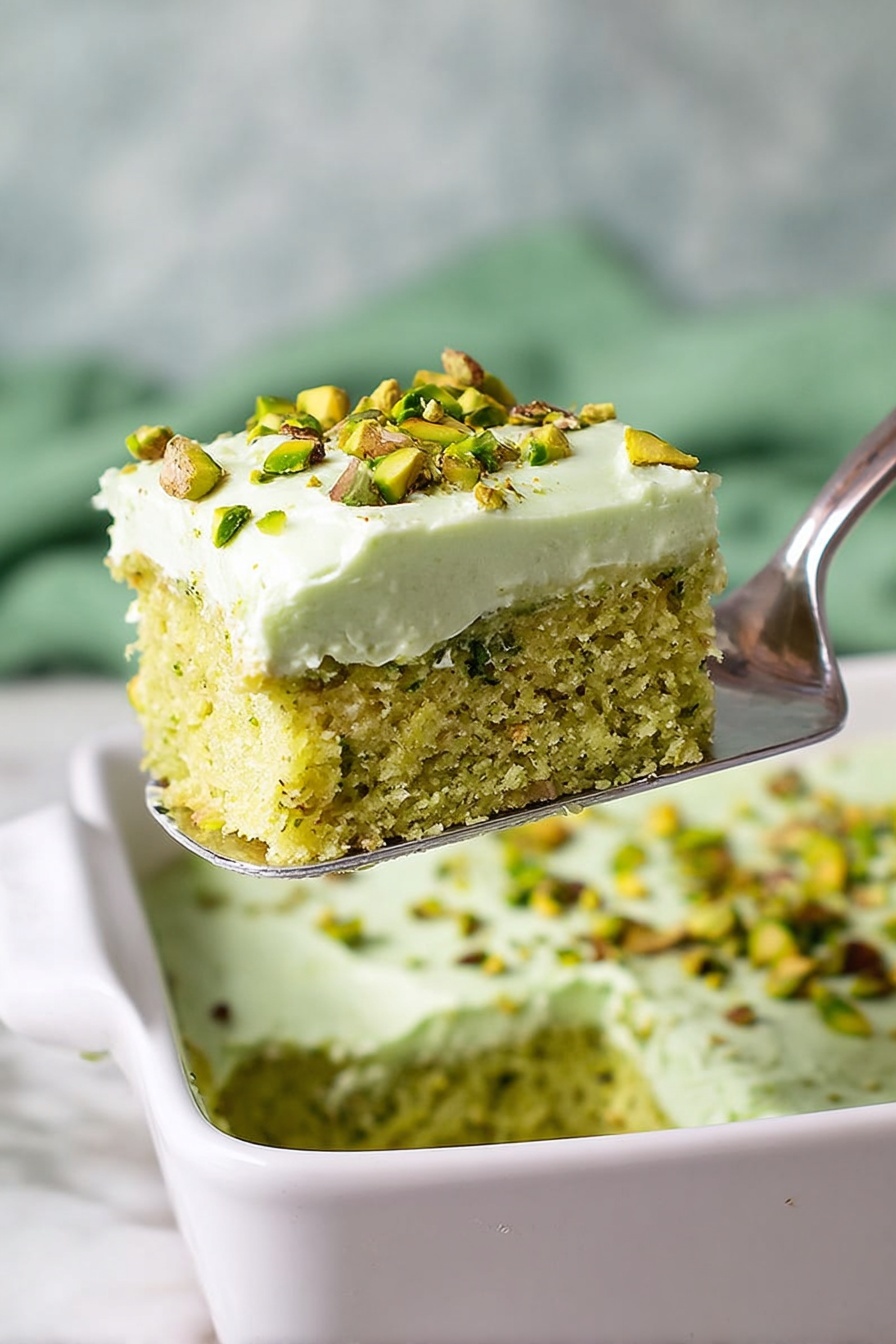 - Rich pistachio flavor: Both the cake and frosting highlight pistachios in a lovely, natural way.
