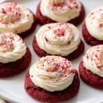 Delightfully soft and festive red velvet cookies featuring a rich cream cheese eggnog frosting. These cookies combine classic red velvet flavors with a hint of peppermint and a creamy, spiced frosting perfect for holiday celebrations.