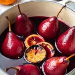 - For best flavor, serve wine poached pears the next day to allow the fruit to absorb more of the poaching liquid.