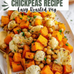 - Finish and Serve: Transfer the roasted vegetables and chickpeas to a serving platter, sprinkle with fresh chopped parsley, and adjust salt and pepper to taste before serving.