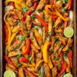 - Garnish & serve: Remove the sheet pan from the oven, squeeze fresh lime juice over the fajitas, and sprinkle with fresh cilantro leaves if desired. Build your fajitas by filling warm tortillas with the chicken and vegetable mixture and adding your choice of toppings such as sour cream, pico de gallo, guacamole, or shredded cheese.