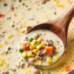 Shepherd's Pie Soup is a comforting and hearty soup that combines all the flavors of the classic shepherd's pie in a creamy, cheesy broth. This recipe features tender mashed potatoes, ground beef, mixed vegetables, and a flavorful seasoned broth, topped with melted cheddar cheese for a satisfying bowl perfect for cozy meals.