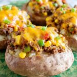 - Stuff and Top the Potatoes: Spoon the beef and vegetable filling into the opened potatoes. Sprinkle 1 cup shredded cheddar cheese evenly over the top of each stuffed potato.