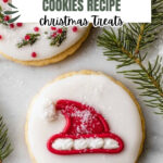 - Decorate santa hat cookies: Let remaining cookies set on baking sheet. Melt white chocolate and fill a pastry bag. Mix remaining chocolate with red oil-based food coloring for red icing and place in a separate piping bag. Pipe the red chocolate in hat shapes on cookies, adding white chocolate details to rims and tops. Sprinkle with sanding sugar. Optionally, use green food coloring and similar technique for Christmas tree designs.