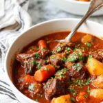 This hearty Beef Stew recipe is perfect for slow cooker enthusiasts looking for a comforting, flavorful meal. Tender chunks of beef simmer with potatoes, carrots, celery, and a rich tomato-based gravy for a classic and satisfying dish.