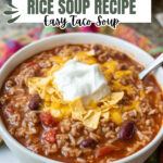 A comforting Slow Cooker Taco Rice Soup featuring lean ground beef, fire roasted tomatoes, beans, and tender rice, infused with flavorful taco seasoning. This easy, hands-off recipe is perfect for a hearty dinner and can be topped with your favorite garnishes for a personalized touch.