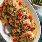 A flavorful and hearty Smothered BLT Chicken recipe featuring crispy bacon, tender chicken breasts, fresh spinach, grape tomatoes, and a creamy parmesan sauce. Perfect for a comforting dinner that's quick to prepare.