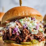 - Assemble Sandwich: On the bottom halves of the buns, layer the hot beef brisket evenly. Drizzle with barbecue sauce and then add a generous portion of coleslaw on top.