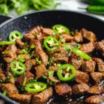 - Combine steak with sauce: Return steak bites to the pan, stirring to coat them thoroughly in the buttery garlic sauce with jalapeños.