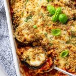 This Eggplant Casserole is a deliciously layered dish featuring roasted eggplant slices, marinara sauce, toasted panko breadcrumbs, and a blend of Parmesan and mozzarella cheeses. Baked to golden perfection, this casserole offers comforting Italian-inspired flavors perfect for a family dinner or entertaining guests.
