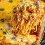 Mexican Spaghetti is a flavorful and comforting dish combining a savory ground beef taco-seasoned meat sauce with a creamy cheesy sauce over tender spaghetti, all baked to bubbly perfection and garnished with fresh cilantro.