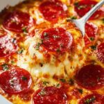 This Pizza Dip is a creamy, cheesy appetizer perfect for sharing, featuring a blend of cream cheese, sour cream, marinara sauce, and melty mozzarella topped with pepperoni and baked to bubbly perfection. Serve it warm with crusty bread or chips for a crowd-pleasing party snack.