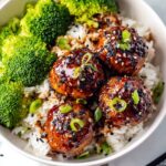 These Sticky Glazed Chicken Ginger Meatballs are a flavorful and healthy dish featuring tender ground chicken seasoned with ginger, basil, and spices, baked to perfection, and coated in a sweet and tangy coconut aminos glaze. Served with jasmine rice and steamed broccoli, this meal is perfect for a delicious dinner that’s both satisfying and wholesome.