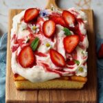 A delightful Strawberry Rose Cake featuring a luscious strawberry rose compote swirled into a soft, fragrant cake batter, topped with a smooth cream cheese buttercream and garnished with fresh strawberries and dried rose petals. Perfect as a snack or dessert with a floral hint and fresh berry flavor.