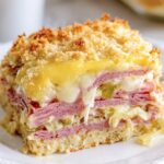 This Reuben Casserole is a hearty and delicious dish that brings the classic flavors of a Reuben sandwich to the table in a convenient casserole form, perfect for serving a crowd. Layers of rye bread, pastrami, sauerkraut, Swiss cheese, and a tangy special sauce come together baked to perfection.