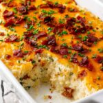 This Easy Twice Baked Potato Casserole combines creamy mashed potatoes with crispy bacon, cheddar, and Gruyere cheese for a cheesy, comforting side dish perfect for family dinners or special occasions.
