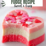 Delight in these festive Valentine Hearts Fudge, featuring layers of creamy white chocolate tinted with red food coloring and topped with heart-shaped sprinkles. Perfect for gifting or celebrating love, this easy-to-make fudge combines sweetened condensed milk and white chocolate chips for a smooth, rich treat that sets quickly in the freezer and refrigerator.