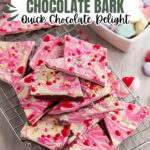 Allow the bark to cool at room temperature for about 30 minutes or until completely hardened. Once firm, use the parchment overhang to lift the bark from the pan, then break or cut it into irregular pieces to serve. Whether sharing with loved ones or gifting, this bark is sure to spread some Valentine’s Day cheer!