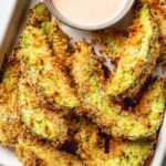 - For oven baking, preheat the oven to 425°F (220°C). Arrange coated avocado fries on parchment paper, spray with oil, bake for 10 minutes, flip, spray again, and bake for another 10 minutes until golden and crispy.