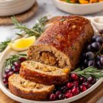 This vegan turkey recipe offers a flavorful, plant-based alternative perfect for holiday meals or special occasions. Made with white beans, vital wheat gluten, and seasoned with fresh herbs and poultry seasoning, it features a savory stuffing center and a deliciously glazed crust. Steamed and then baked to perfection, this turkey roast is hearty, moist, and satisfying for vegan and vegetarian diets.