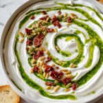 Spoon the whipped ricotta into your serving bowl or onto a pretty platter. Use the back of a spoon to create a well or swirl—a little artistic touch goes a long way. Sprinkle on the toasted pine nuts and chopped sun-dried tomatoes, then drizzle the vibrant basil oil on top. Serve immediately with crusty bread, pita chips, or crackers for dipping.
