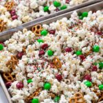 I first made this White Chocolate Christmas Popcorn Recipe a few years ago when I needed a quick gift for a cookie exchange, and it was an instant hit! What’s not to love? It’s festive, easy to share, and combines textures and flavors that keep people reaching back for more.